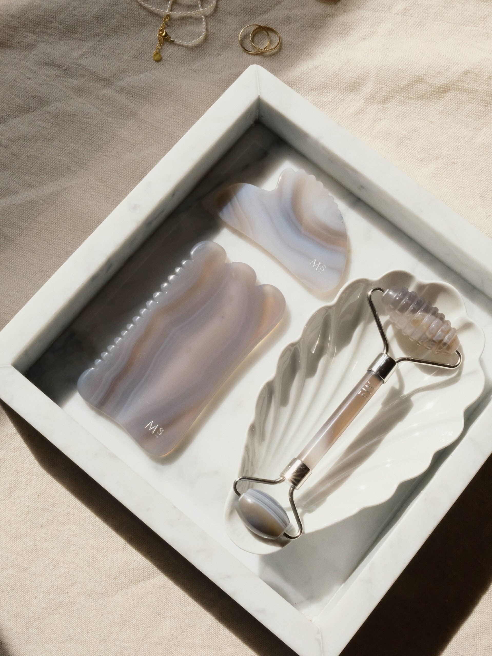 - Vask din Gua Sha med vand og mild sæbe efter brug.