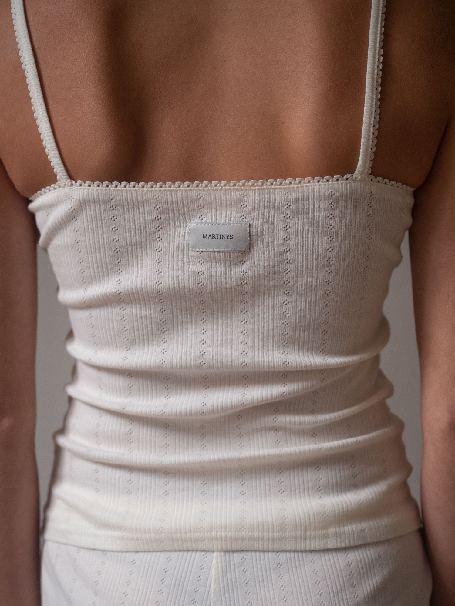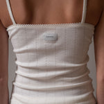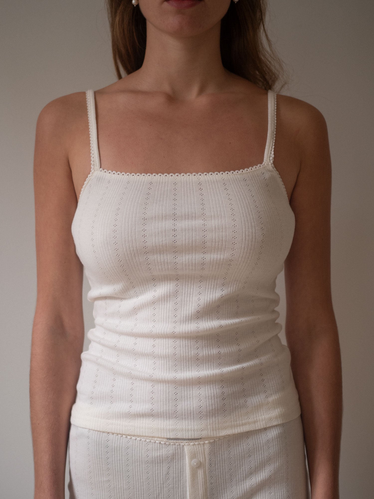 Denne loungewear top er skabt i fin pointelle af 100% OEKO-TEX bomuld. Den delikate struktur giver et feminint udtryk, mens pasformen omfavner kroppen uden at stramme. En top, der inviterer til ro, komfort og en følelse af diskret luksus – uanset om du bruger den hjemme eller som del af dit hverdagsoutfit. Toppen er true to size, så vælg din normale størrelse, når du bestiller.