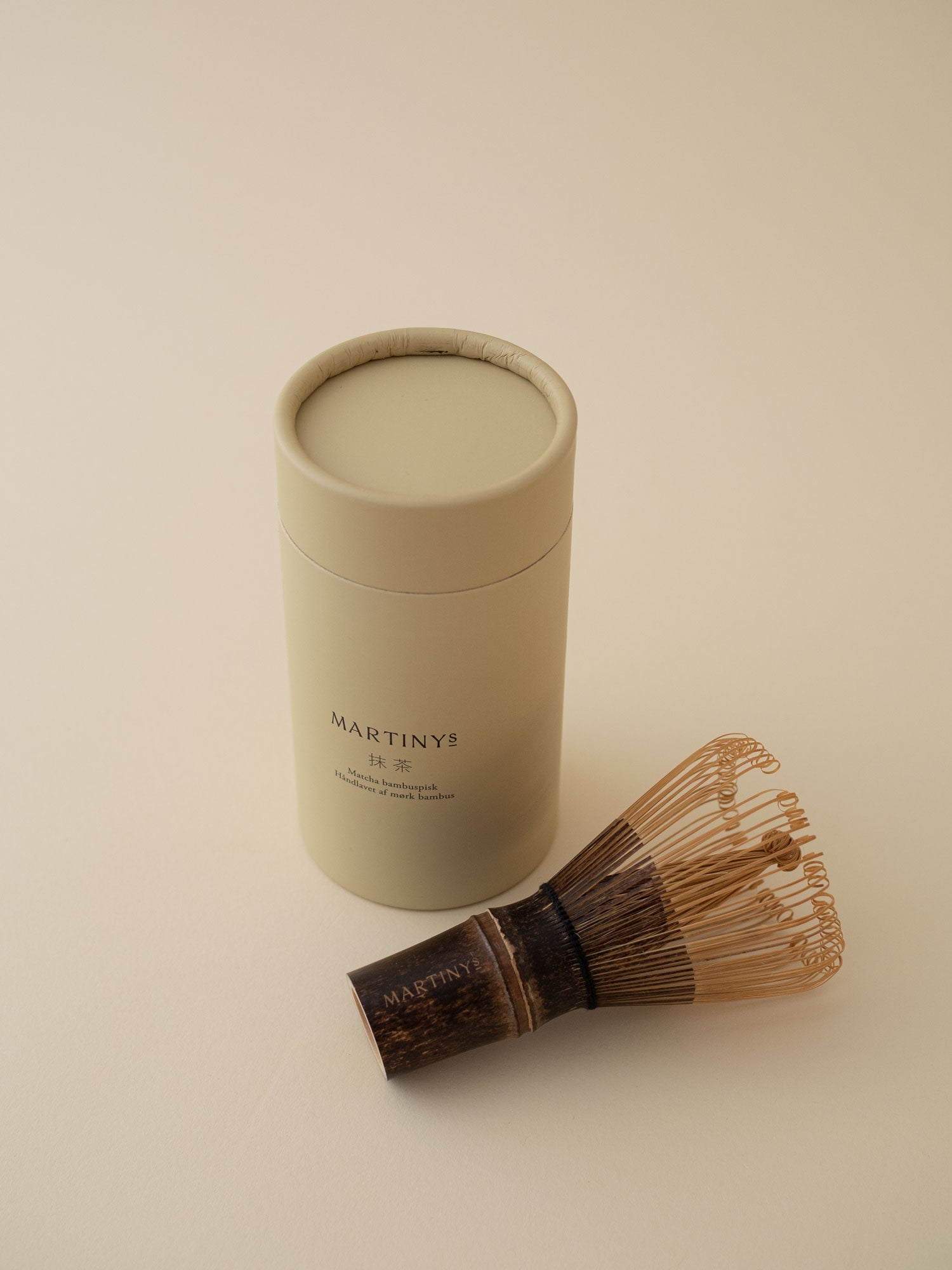 - Bambuspisken er et traditionelt og essentielt redskab, der sikrer, at matchaen piskes ud og får den rette konsistens.