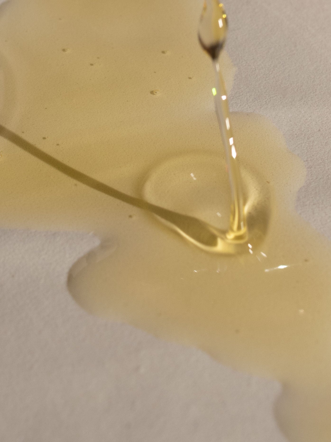 - Olien har en smuk gylden farve og let konsistens, som ikke fedter og siver hurtigt ind i huden, hvor den efterlader en smuk glød.