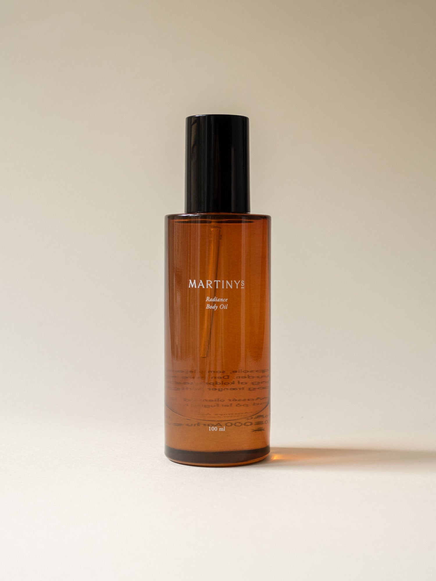 RADIANCE BODY OIL“Jeg elsker, når hudpleje føles som en lille luksus i hverdagen – og det gør MARTINYS kropsolie. Den efterlader min hud silkeblød og gennemfugtet uden at fedte. Jeg bruger den både til kroppen og som en mild øjenmakeupfjerner.”